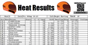 A strong win from second on the grid by James Dziuba, also taking the fastest lap to gain the maximum 19 points from heat one. Closely followed by Jack Goring who, after gaining 15 points from heat 1 was unbeatable in the championship!